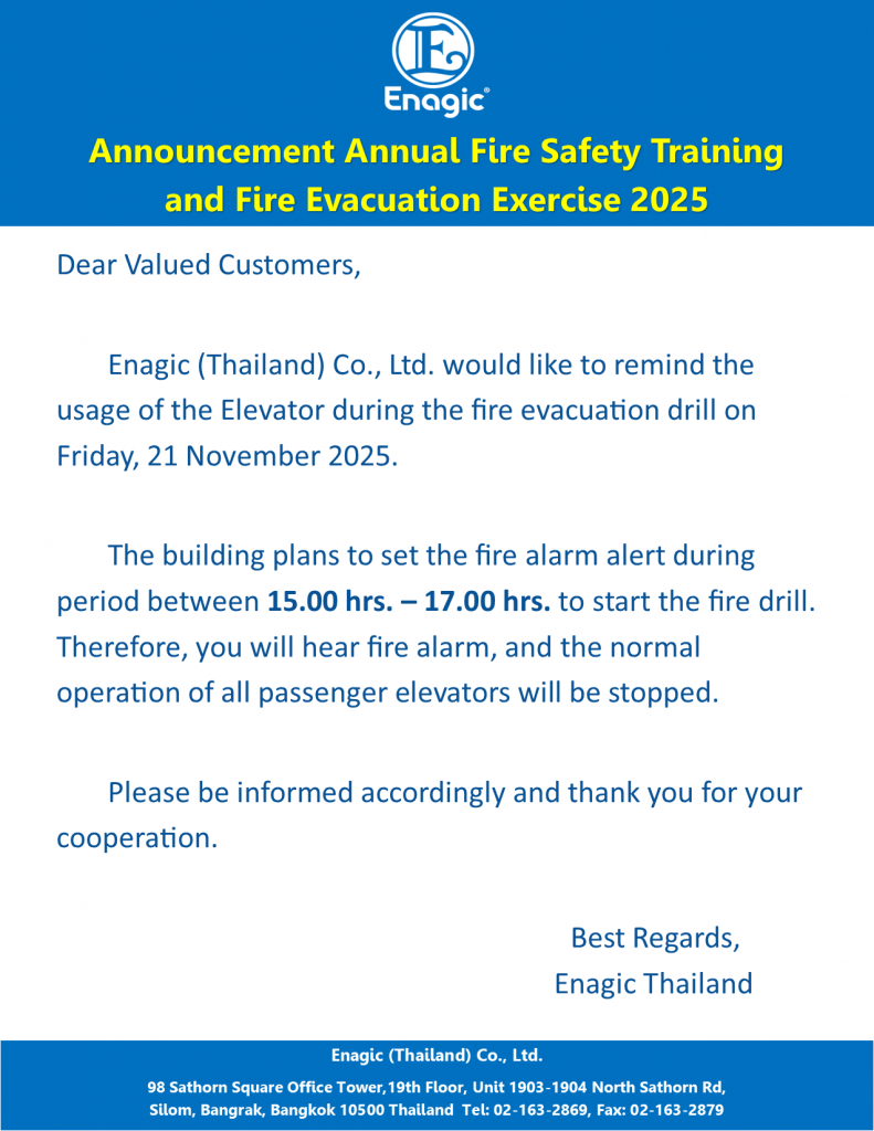 • Announcement Annual Fire Safety Training and Fire Evacuation Exercise 2025