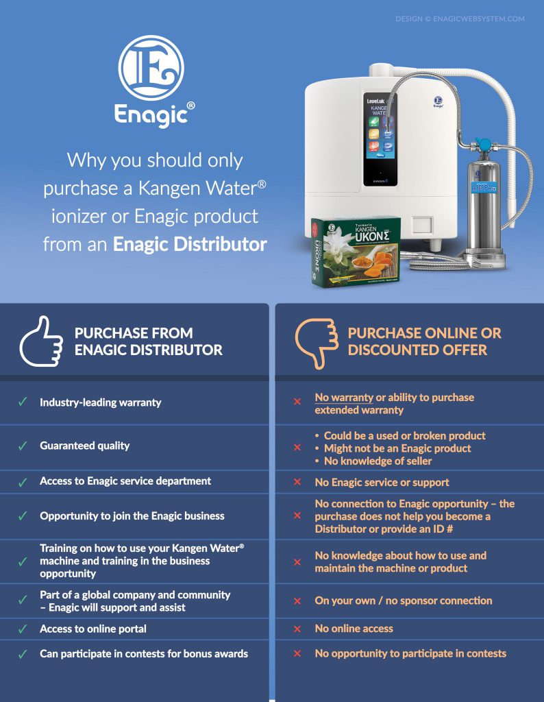 Please be advised that discounted sales through webshops or any unauthorized channels are strictly prohibited under Enagic’s policies.